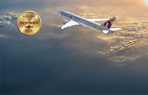 نفتخر بحمل لقب أفضل شركة طيران في العالم للمرة التاسعة، وذلك لعام 2025، محققين بذلك رقماً قياسياً جديداً في حفل جوائز سكاي تراكس 2025. يسعدنا الفوز بثقتكم المستمرة، فهي تدفعنا للالتزام بتقديم أفضل تجربة سفر على متن جميع رحلات الخطوط الجوية القطرية.