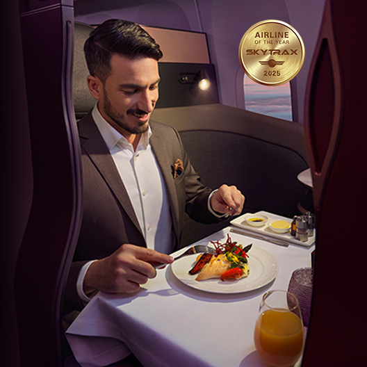 مقصورات فسيحة، مأكولات مستلهمة من وجهة السفر، وضيافة عالمية للارتقاء بتجربة سفرك.