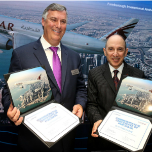 وقال سعادة السيد على شريف العمادي وزير المالية في دولة قطر ورئيس مجلس ادارة مجموعة الخطوط الجوية القطرية بهذه المناسبة: “يسعدني التواجد في معرض فارنبره الجوي اليوم الذي شهد الاعلان عن العديد من الاتفاقيات والانجازات المهمة للناقلة الوطنية لدولة قطر. وأود ان اعبر عن فخري في دور الخطوط الجوية القطرية خلال اليوم الاول من المعرض في تعزيز العلاقات بين دولة وقطر والمملكة المتحدة وبتواجدي اليوم كجزء من النمو والنجاح المستمر للخطوط الجوية القطرية."