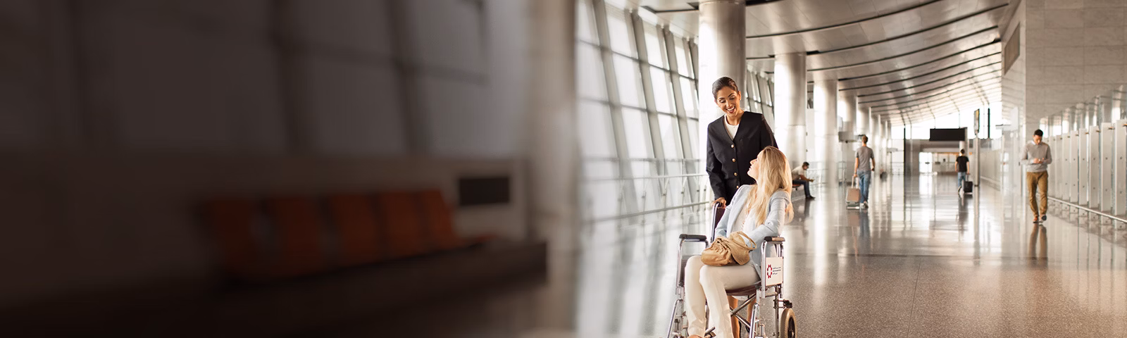 Wir haben uns verpflichtet, Fluggäste mit Behinderungen und anderen speziellen Bedürfnissen angemessen zu betreuen.