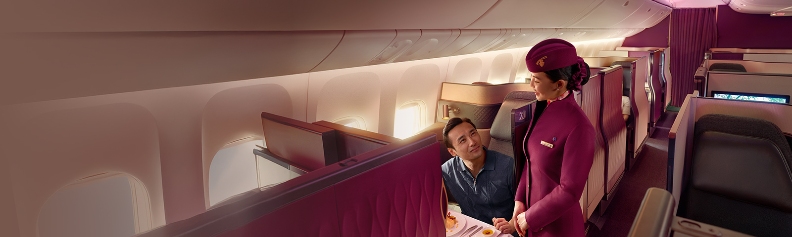 - Business class cabin and seat depends on the type of aircraft. Qsuite is available on select routes. Please check the availability of Qsuite at the time of booking.