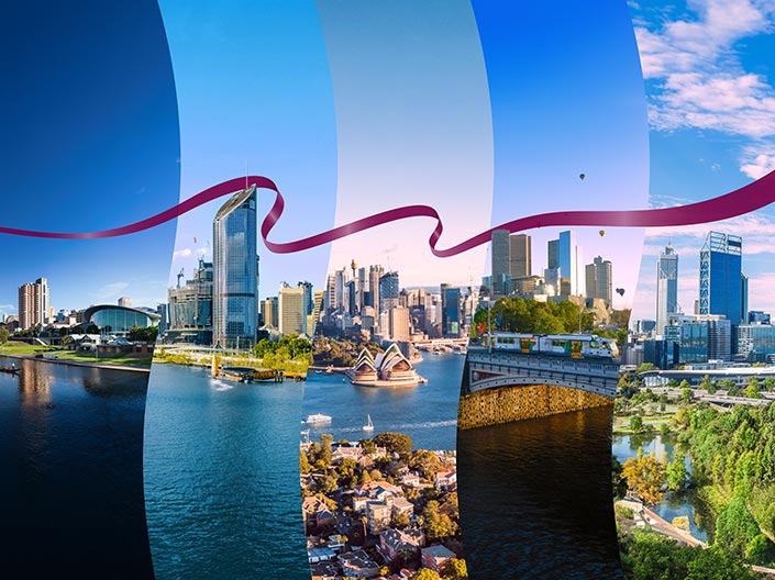 To Brisbane, Perth, Sydney, Melbourne and Adelaide