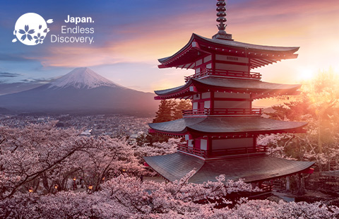 Witness Japan's changing seasons, from delicate spring cherry blossoms, vibrant summer greens and autumn's golden hues to winter's snowy peaks.