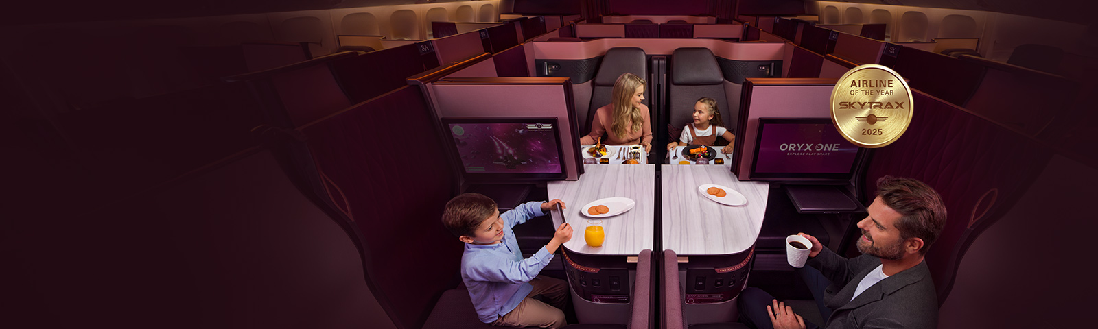 Fly in the World’s Best Business Class, Qsuite, for unparalleled comfort and exceptional service. Book now and experience the pinnacle of air travel.