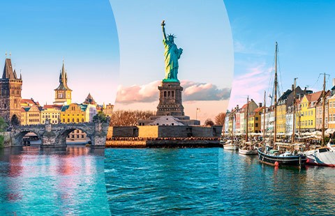 Imagine strolling down elegant boulevards, eating a leisurely lunch at a street side café or visiting famous sites. Embark on a spectacular journey and discover some of the most iconic cities in Europe and the Americas with our exclusive advance purchase fares.