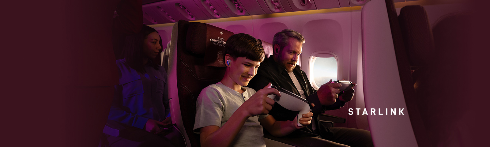 Stay connected in the skies when flying with us thanks to Starlink Wi-Fi. Whether you’re working or streaming, enjoy fast, complimentary internet from gate to gate.