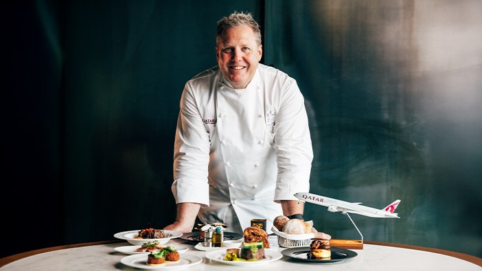 Enjoy his menu on flights from New Zealand to Doha.