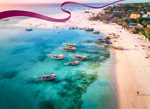Billet aller-retour confirmés en classe économique pour Zanzibar 17,300 MAD 2