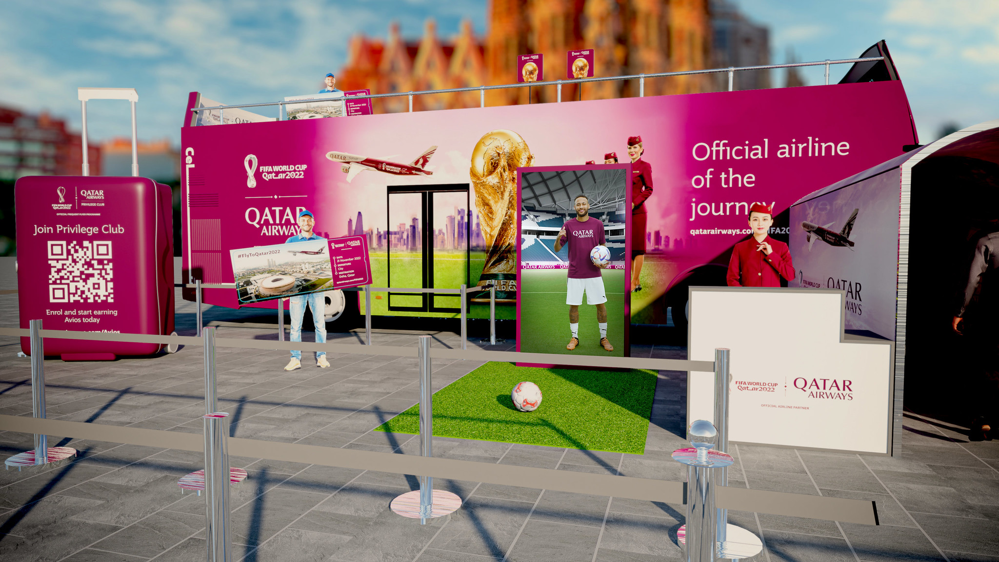 الخطوط الجوية القطرية تحتفل بمناسبة العدّ التنازلي لـ100 يوم على انطلاق كأس العالم FIFA قطر 2022™ عبر جولة أوروبية بحافلة تحمل شعار "الرحلة"