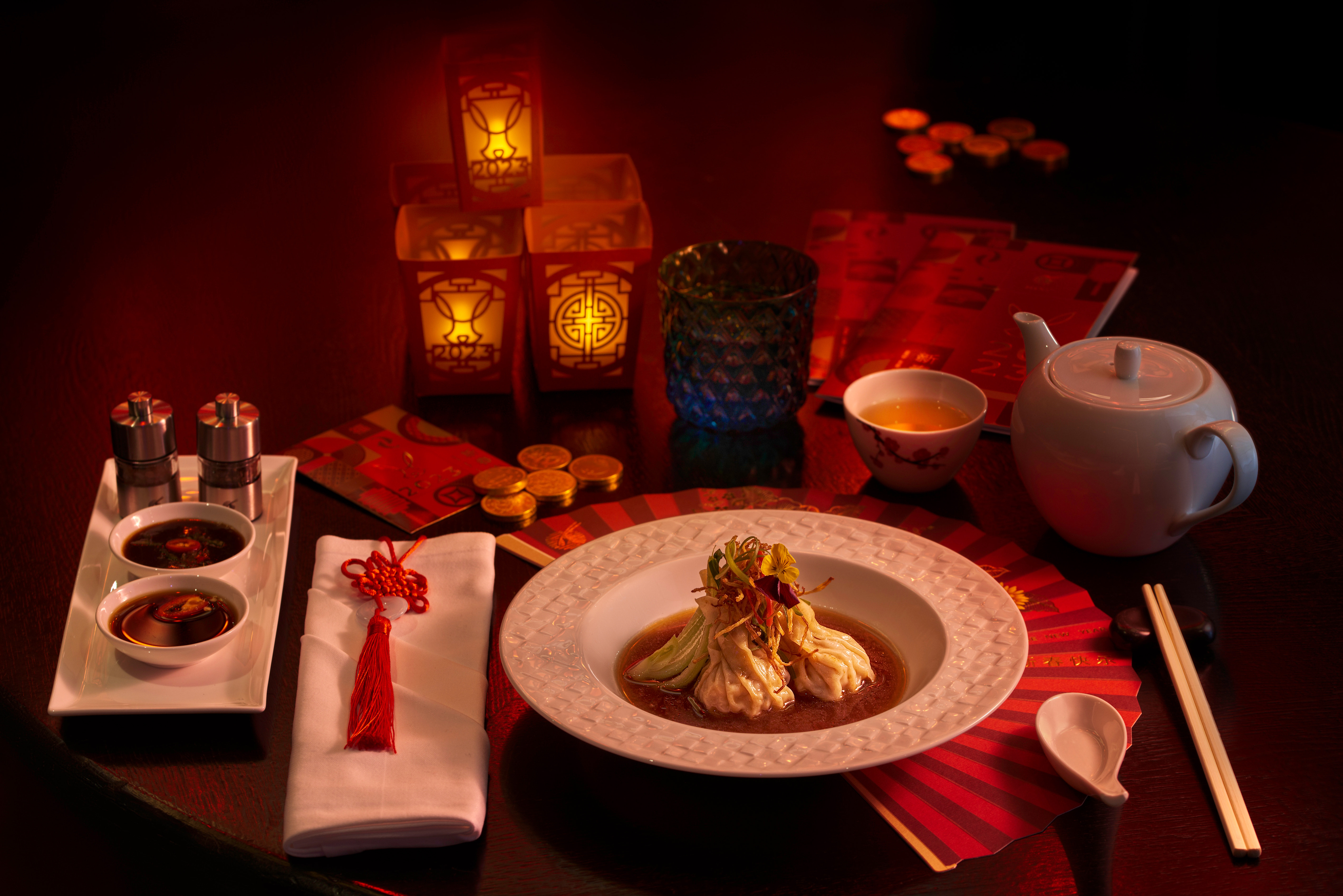 وسيتم توزيع بسكويت الروبيان المقرمش على جميع المسافرين في درجة رجال الأعمال خلال وقت انتظار تقديم الوجبات المختارة التي ستقدم فوق مفرش سفرة مزين بالمروحة الصينية بالإضافة إلى المصباح الصيني الأحمر المضاء بالشمع الصغير. وعندما يحين وقت الحلويات، سيحظى المسافرون بتجربة طبق موس التوفو مع التوت الغوجي والبرتقال.