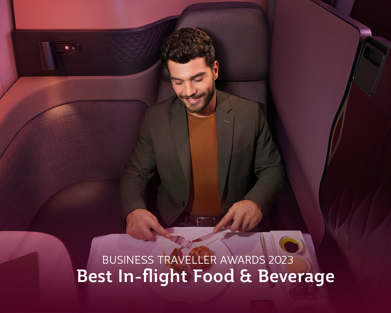 الناقلة الوطنية لدولة قطر تفوز بجائزة أفضل شركة طيران للرحلات طويلة المدى، أفضل درجة رجال الأعمال، أفضل شركة طيران في الشرق الأوسط و أفضل أطعمة ومشروبات على متن الطائرة