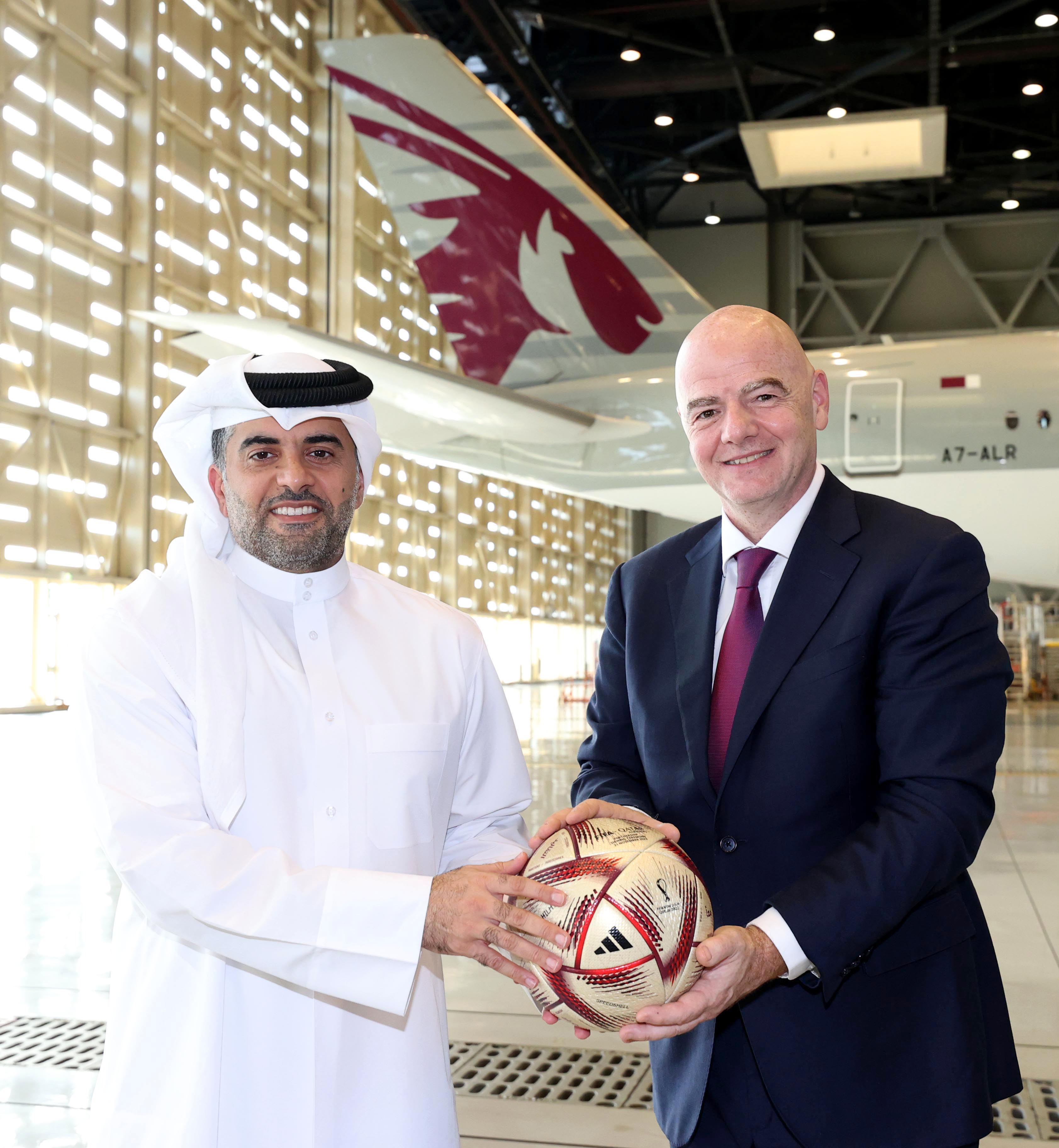 واجتمع كل من المهندس بدر محمد المير، الرئيس التنفيذي لمجموعة الخطوط الجوية القطرية، والسيد جياني إنفانتينو، رئيس الاتحاد الدولي لكرة القدم FIFA، خلال مراسم توقيع تجديد الاتفاقية المشتركة والتي تم عقدها بنفس التاريخ الذي يصادف مرور عام كامل على انطلاق بطولة كأس العالم FIFA قطر 2022™. حيث تم الإعلان عن تجديد التعاون بين الخطوط الجوية القطرية والـFIFA أمام طائرة بوينغ 8-787 في مطار حمد الدولي، المطار الحائز على العديد من الجوائز العالمية.