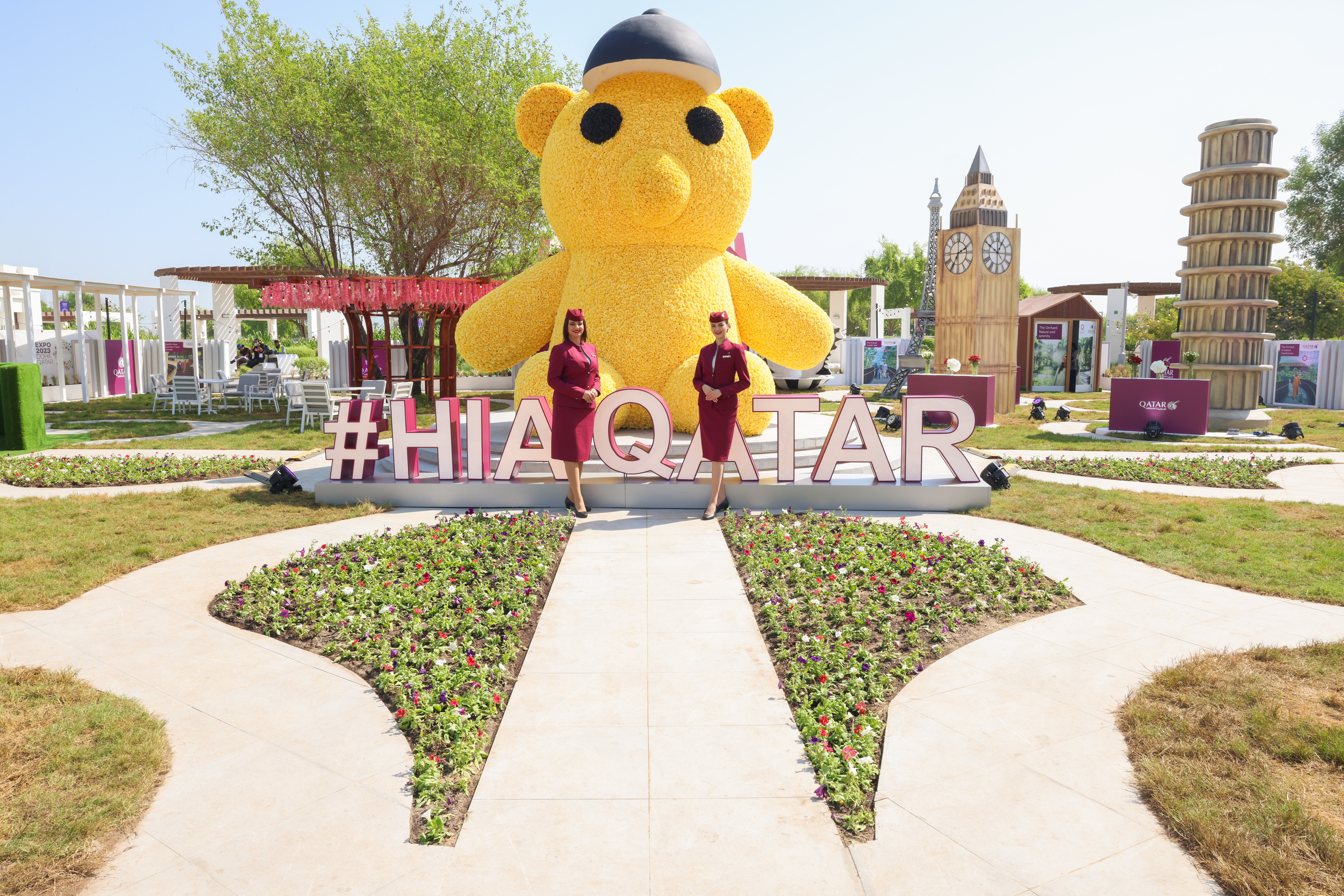 وقد توسط جناح "حديقة الخطوط الجوية القطرية" تمثالاً ضخماً لدب المصباح الشهير، في إشارة مميزة إلى العمل الفني الأصلي في مطار حمد الدولي الحائز على العديد من الجوائز العالمية. كما وضم الجناح نماذج مصغرة من المعالم الشهيرة من مختلف البلدان التي تشغّل الخطوط الجوية القطرية رحلاتها الجوية إليها، معززةً بذلك الدورالحيوي لدولة قطر كبوابةٍ للعالم.