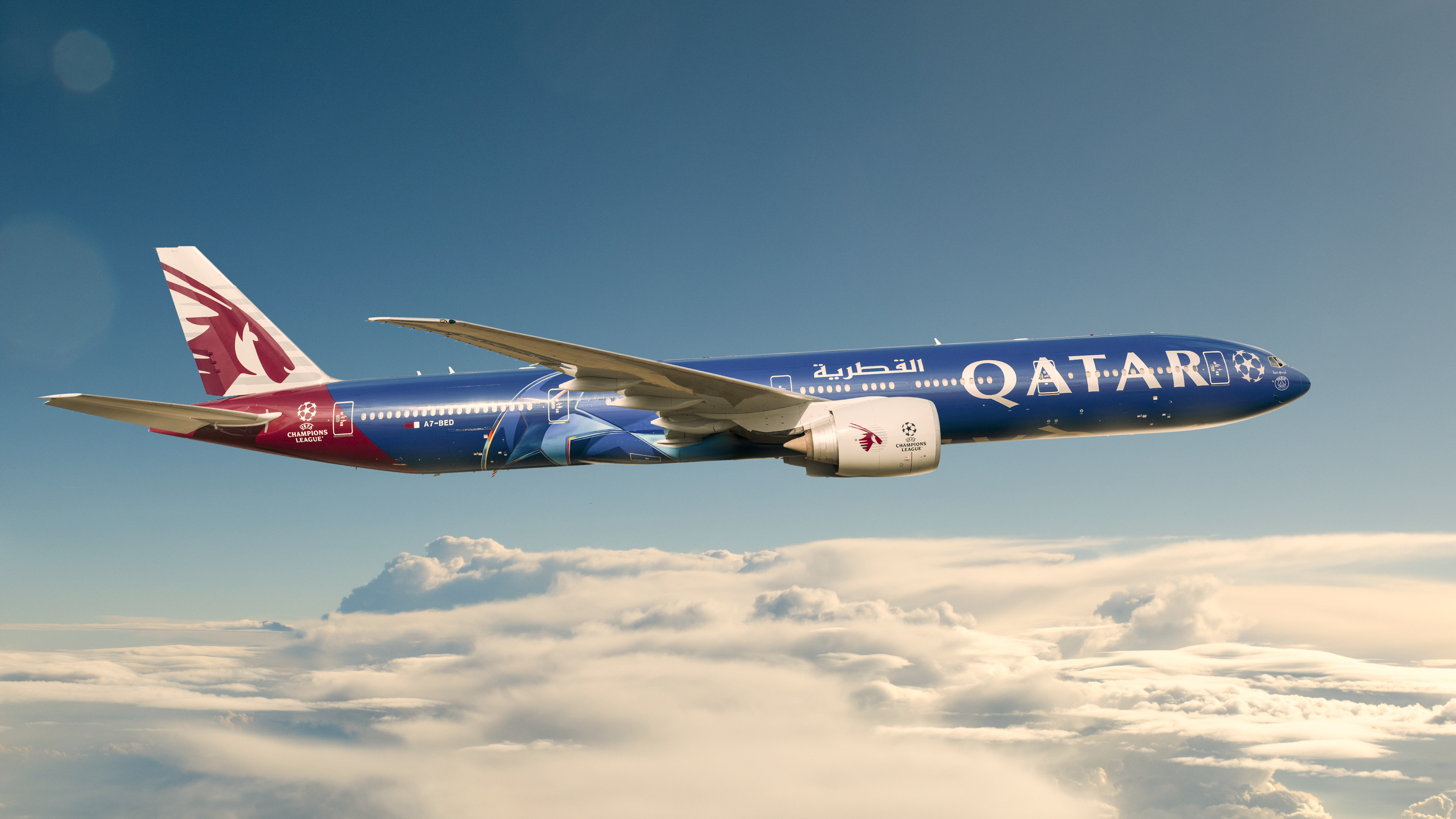 مجموعة طائرات الناقلة القطرية الحديثة المشاركة في المعرض تشمل طائرة بوينغ من طراز 777 المزدانة بحلة دوري أبطال أوروبا (UEFA)، وطائرة القطرية لطائرات رجال الأعمال من طراز جلف ستريم G700 فضلاً عن مقصورة كيوسويت - الجيل الجديد