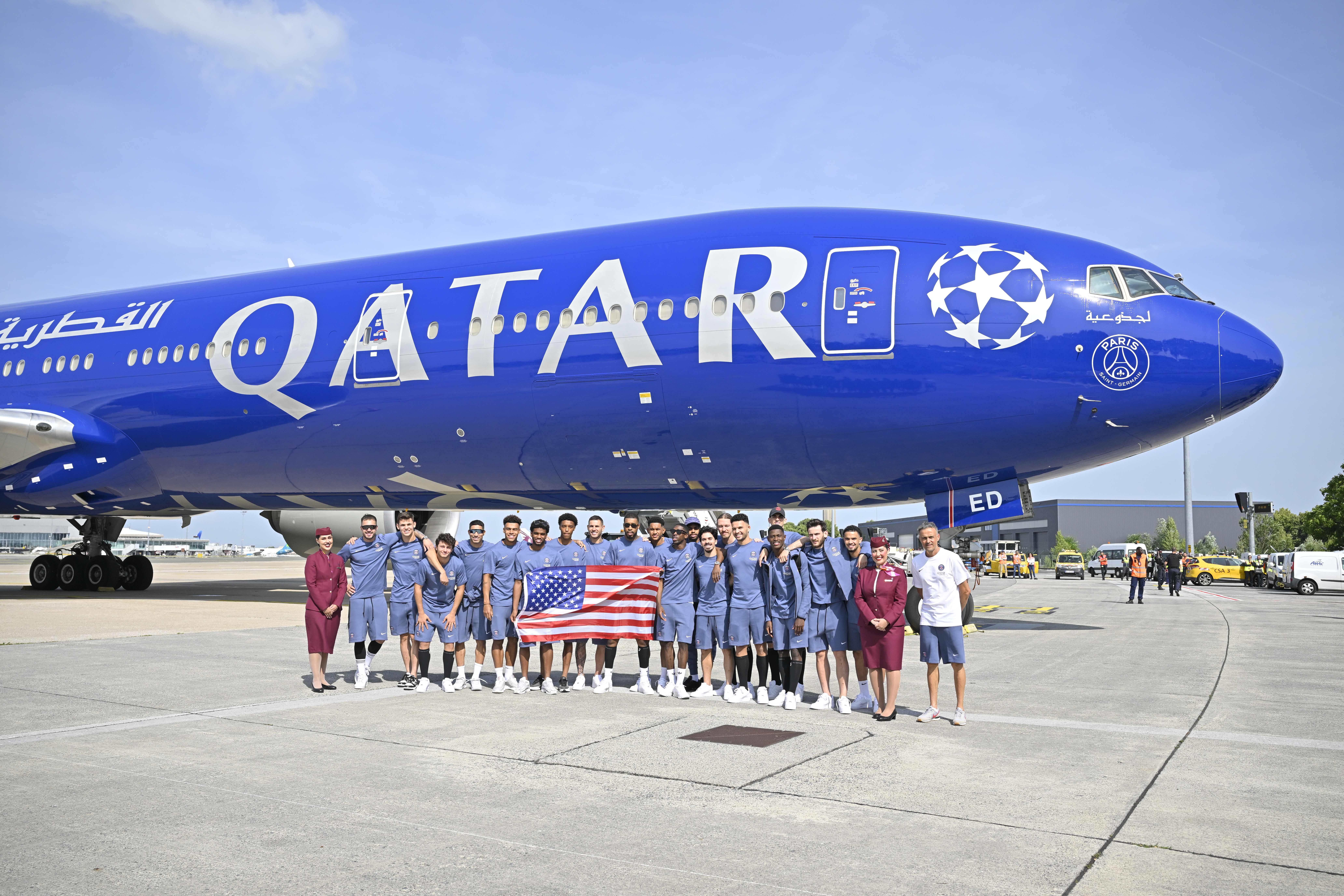 غادر نادي باريس سان جيرمان مطار باريس شارل ديغول على متن طائرة الخطوط الجوية القطرية من طراز بوينغ 777 المزدانة بحلة دوري أبطال أوروبا مع شعار النادي على الطائرة، وذلك قبل إنطلاق فعاليات البطولة الجديدة للفيفا، بطولة كأس العالم للأندية ™FIFA 2025 في الولايات المتحدة.