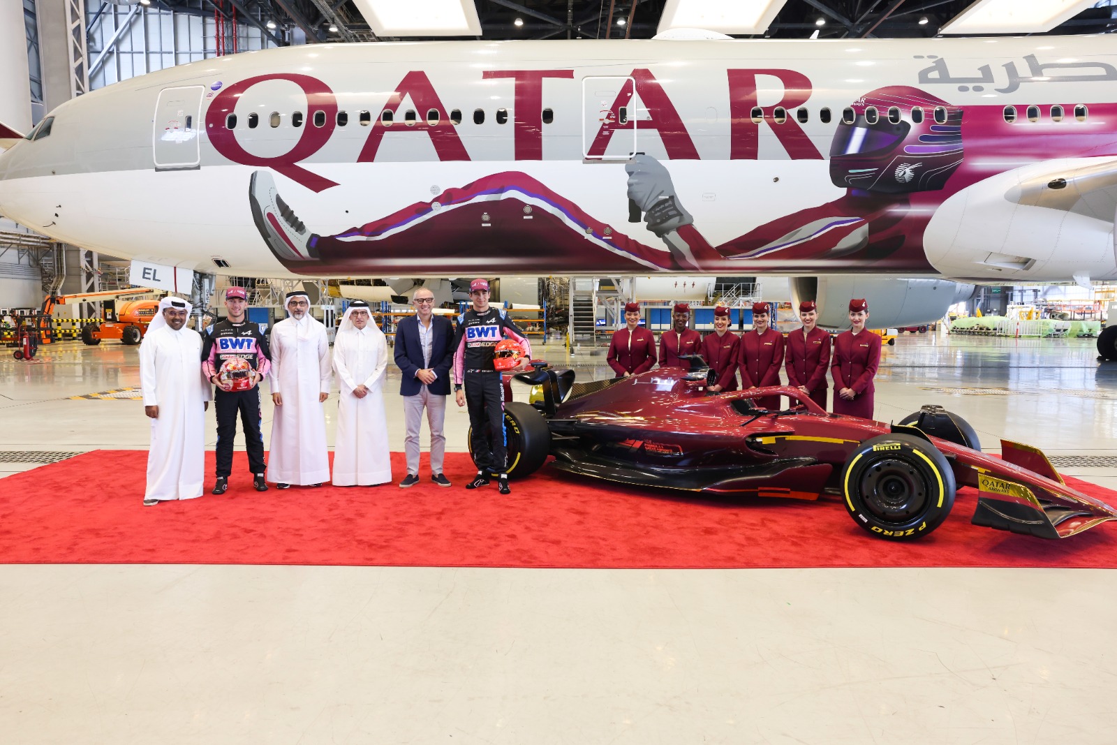 Qatar Airways, Formula 1®, BWT Alpine F1 Team and the Qatar Motor Motorsport Federation Unite for a Captivating Photo Opportunity at the Hamad International Airport Hangar