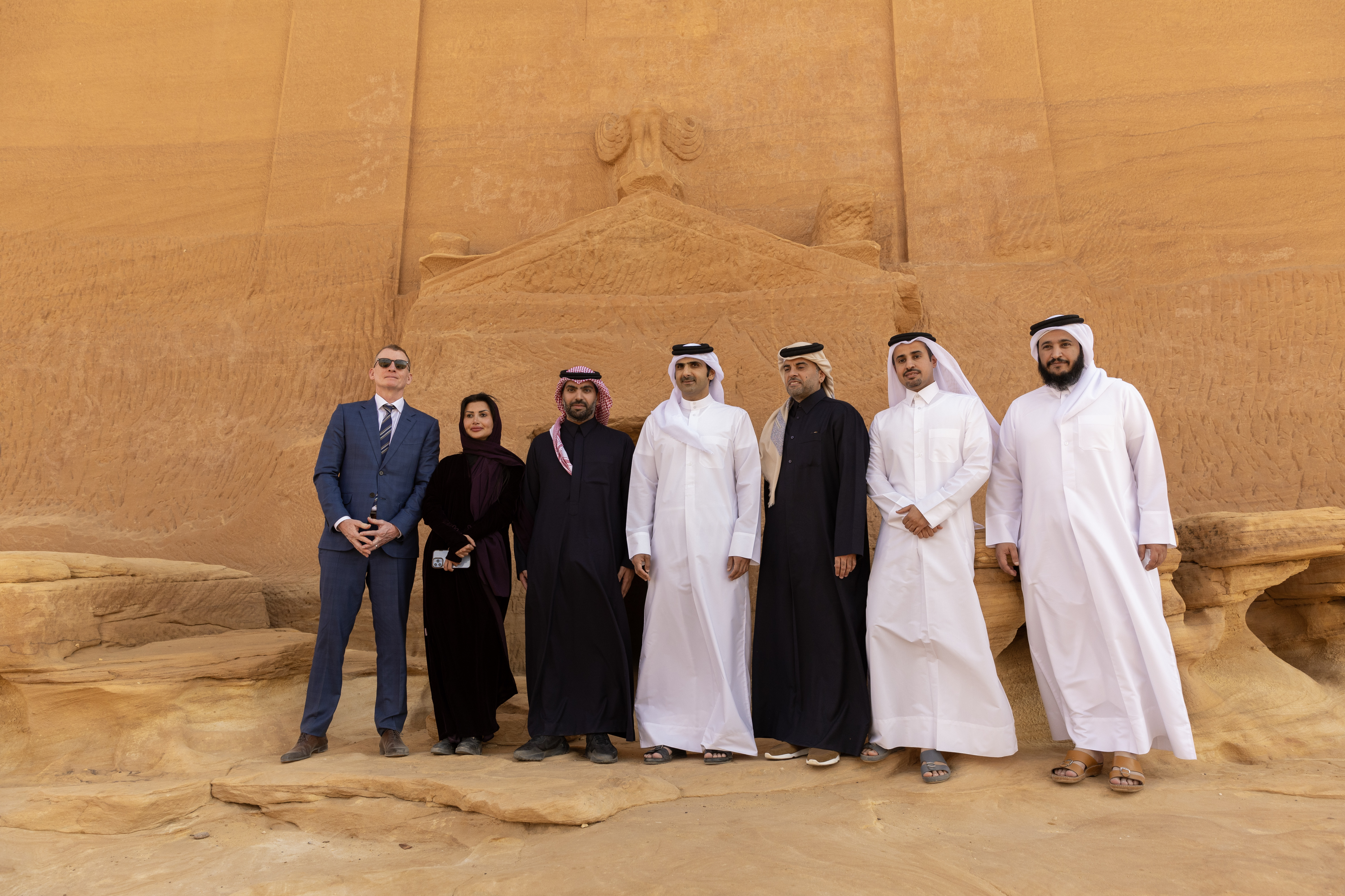 The pinnacle of the trip was the significant visit to the Kingdom’s first UNESCO Heritage Site, Hegra, where His Highness Prince Badr bin Abdullah bin Farhan Al-Saud, Minister of Culture of the Kingdom of Saudi Arabia, received the VIP delegation for a photo opportunity which included a remarkable backdrop of the Tomb of Lihyan Son of Kuza.