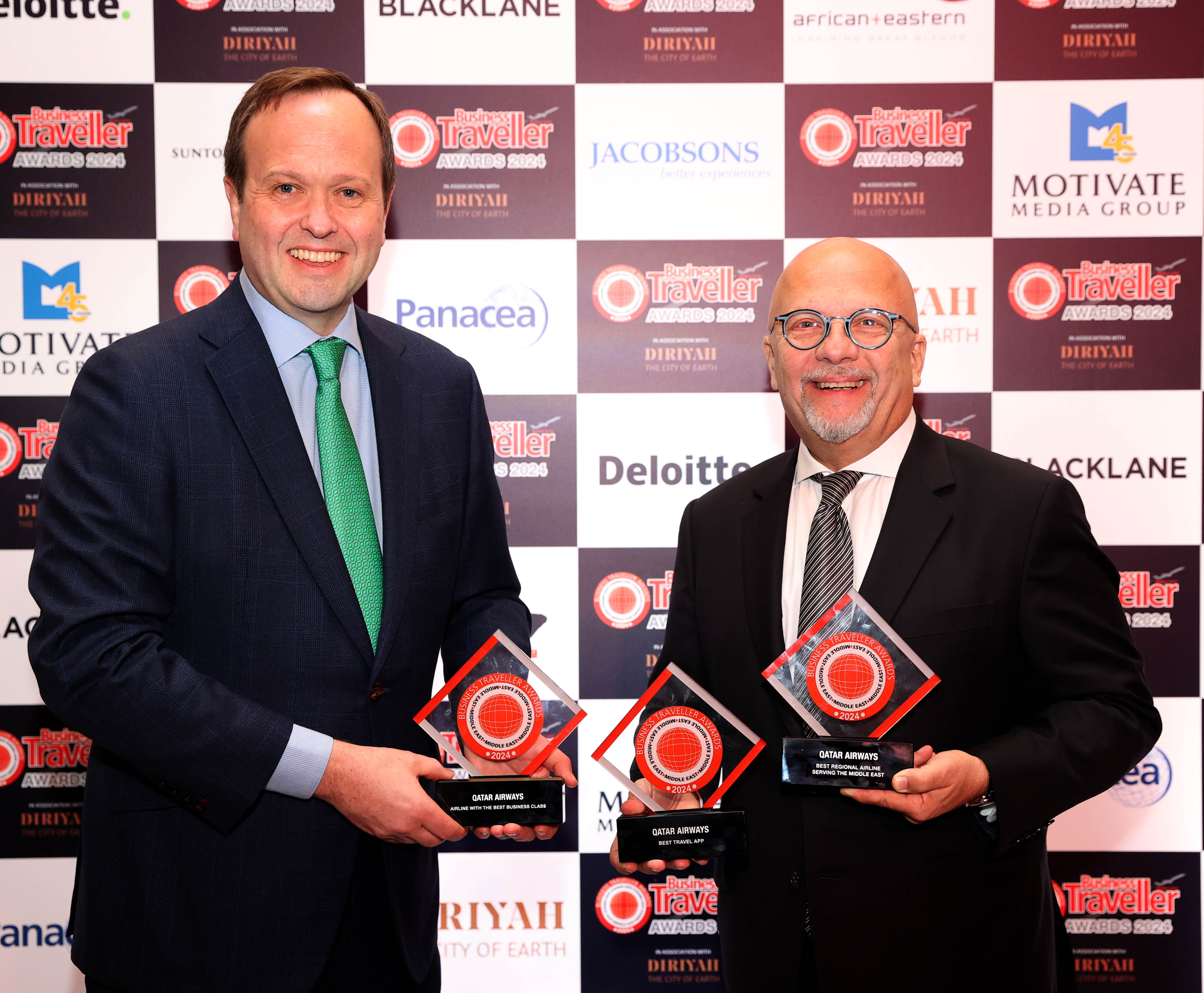 DOHA, Qatar – Qatar Airways won three prestigious titles, including; ‘Best Regional Airline Serving the Middle East’, ‘Airline with the Best Business Class” and ‘Best Travel App’ at the Business Traveller Middle East Awards 2024, held on Monday, 6 May 2024, during the Arabian Travel Market (ATM) in Dubai.