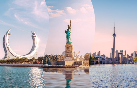 从纽约摩天楼间的晨光, 到旧金山海湾的落日; 从迈阿密灿烂的海岸线, 到西雅图葱郁的雨林都市; 再到芝加哥湖畔的微风—— 美洲的每一帧风景,都是一封邀约。